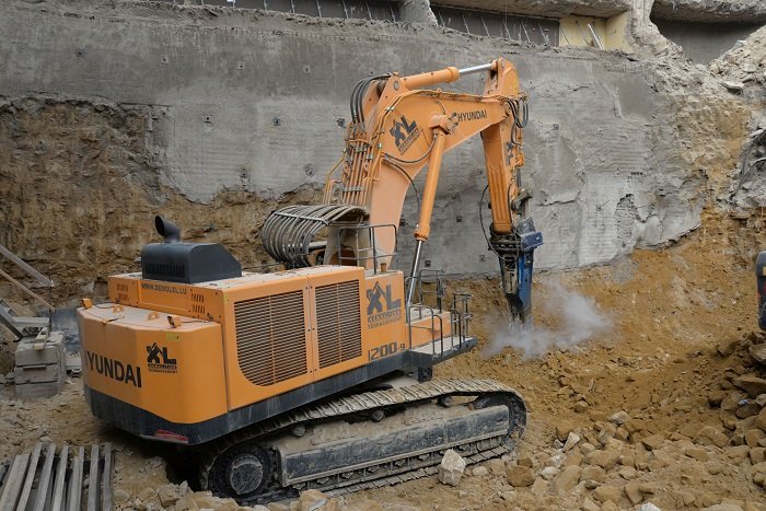 Démolition et terrassement XL Sàrl from Nidderkuer, Luxembourg, has been using the largest capacity Hyundai excavator, the R1200-9, which has an operating weight of 120 tonnes, on a major demolition site in the financial heart of Luxembourg City since March 2017. This is a first for a Hyundai machine of this size to be sold in Europe.